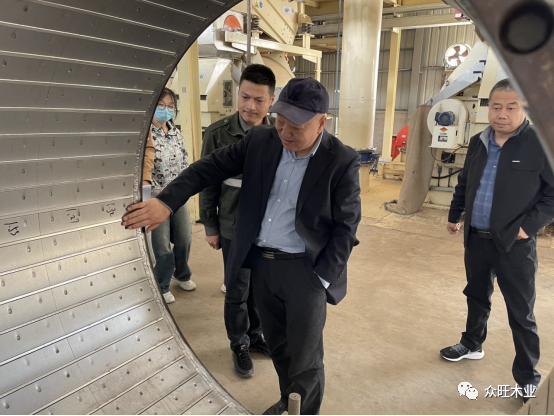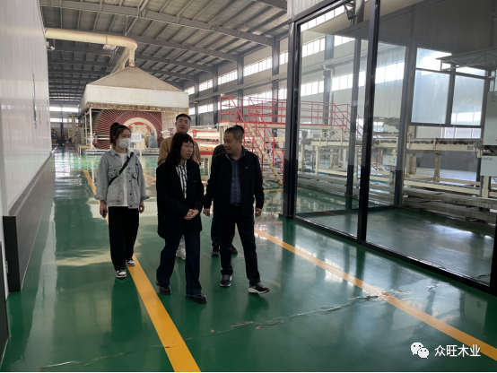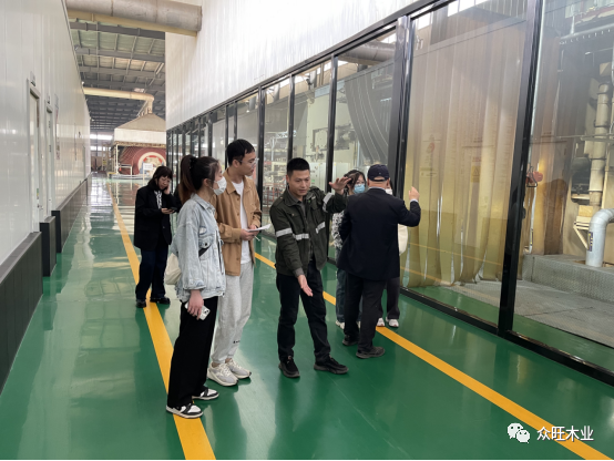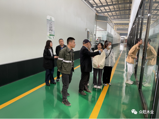 我司生產總經理(康總)與生產總工(楊工)陪同北京林業大學一行人共同參觀了我司的生產車間,從原材料進場,初步加工,原料輸送,設備篩選,科學制膠,到板材的鋪裝,熱壓,養生,砂光,打包等整體生產流程進行詳細參觀介紹,同時對我司的運營情況、主營業務進行了深度交流。